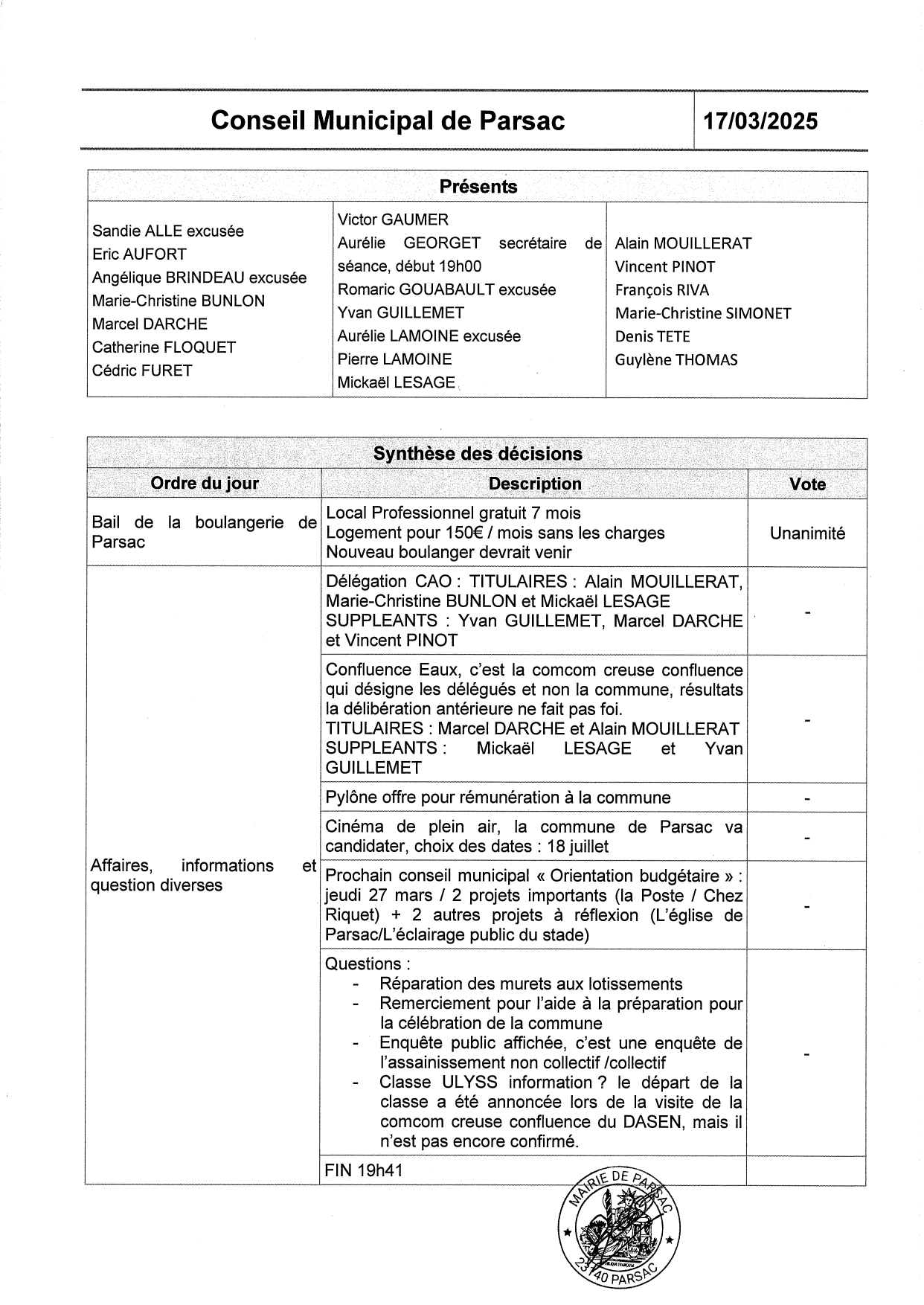 conseil municipal du 17 mars 2025