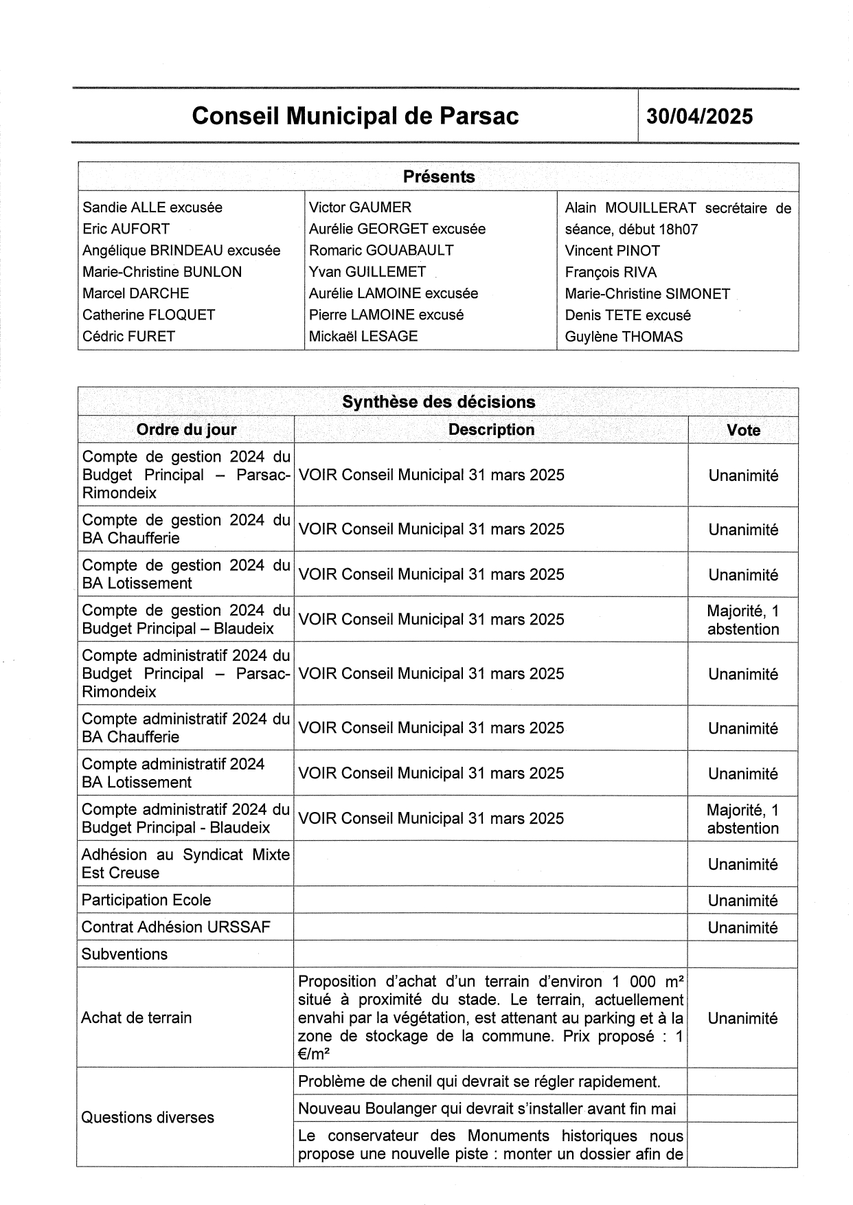 conseil municipal du 30 avril 2025